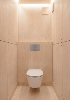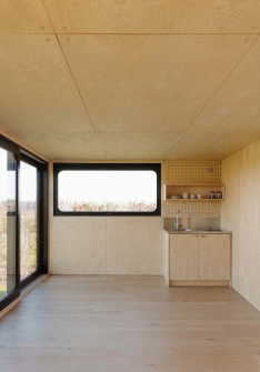 Nous proposons du mobilier qui se fixe dans les cloisons perforées à l'aide d'un simple système mécanique. Ce mobilier est réalisé avec les même panneaux que les finitions murales (mulitplis pin ou bouleau). N'importe qui peut modifier la position d'un mobilier en 10 minutes pour faire évoluer l'aménagement intérieur en fonction des envies et des besoins.